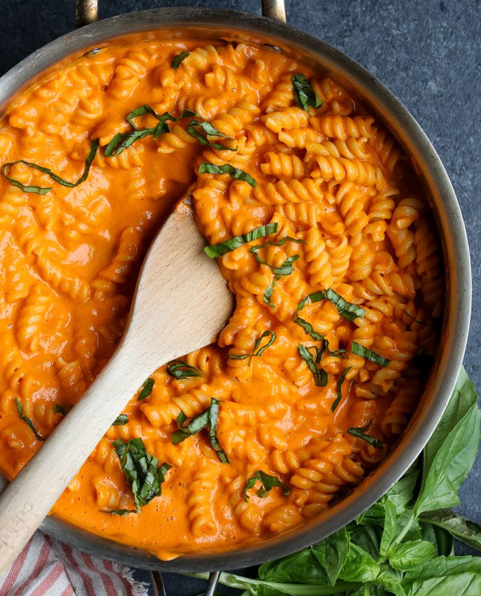 פסטה ברוטב קרם פלפלים קלויים טבעוני